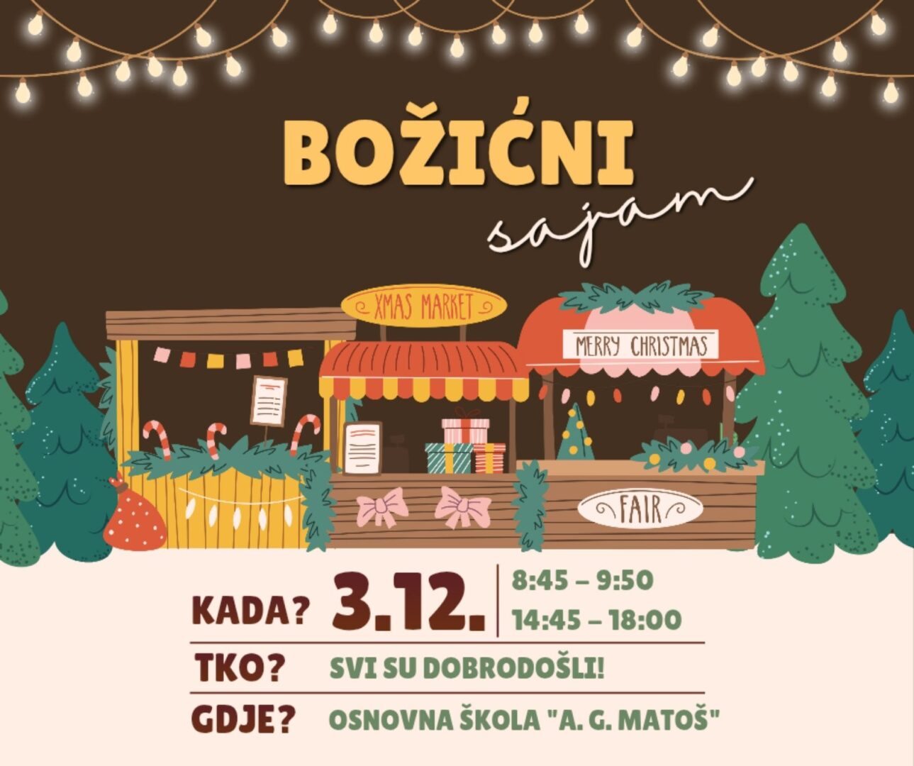 Božićni sajam održat će se u srijedu, 3. prosinca u jutarnjem terminu od 8:45 do 9:50, a poslijepodne od 14:45 do 18h.