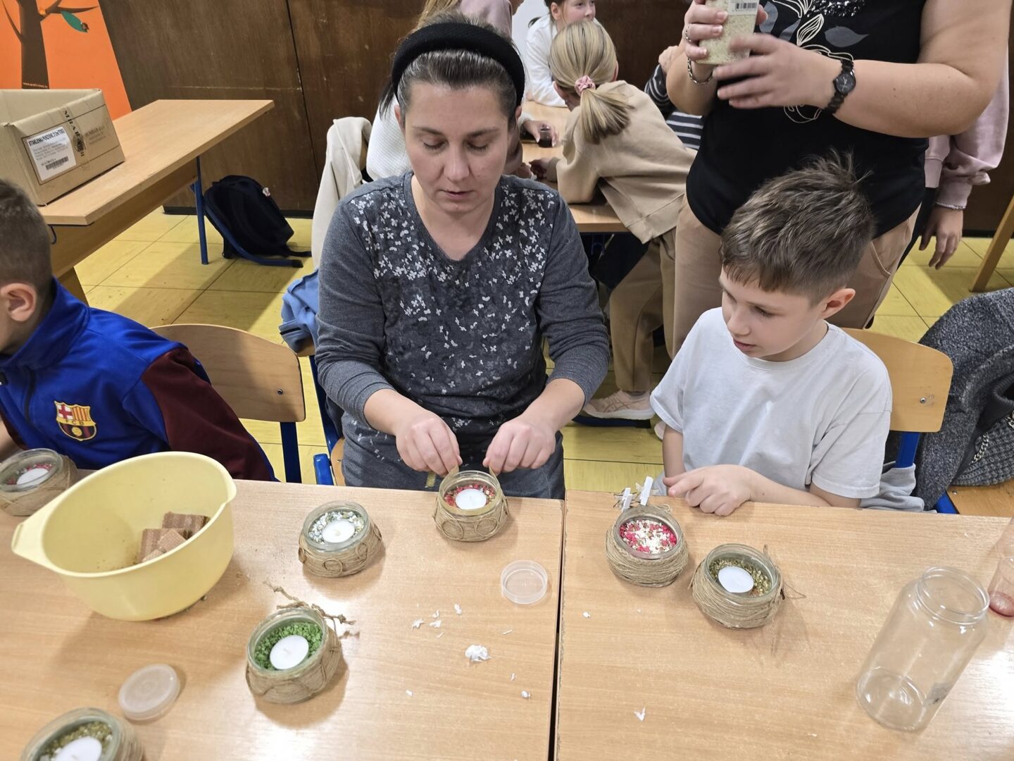 Naime, unazad nekoliko tjedana učenici 4. razreda zajedno sa svojim roditeljima pod vodstvom razrednih učiteljica izrađivali su božićne ukrase.