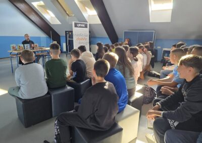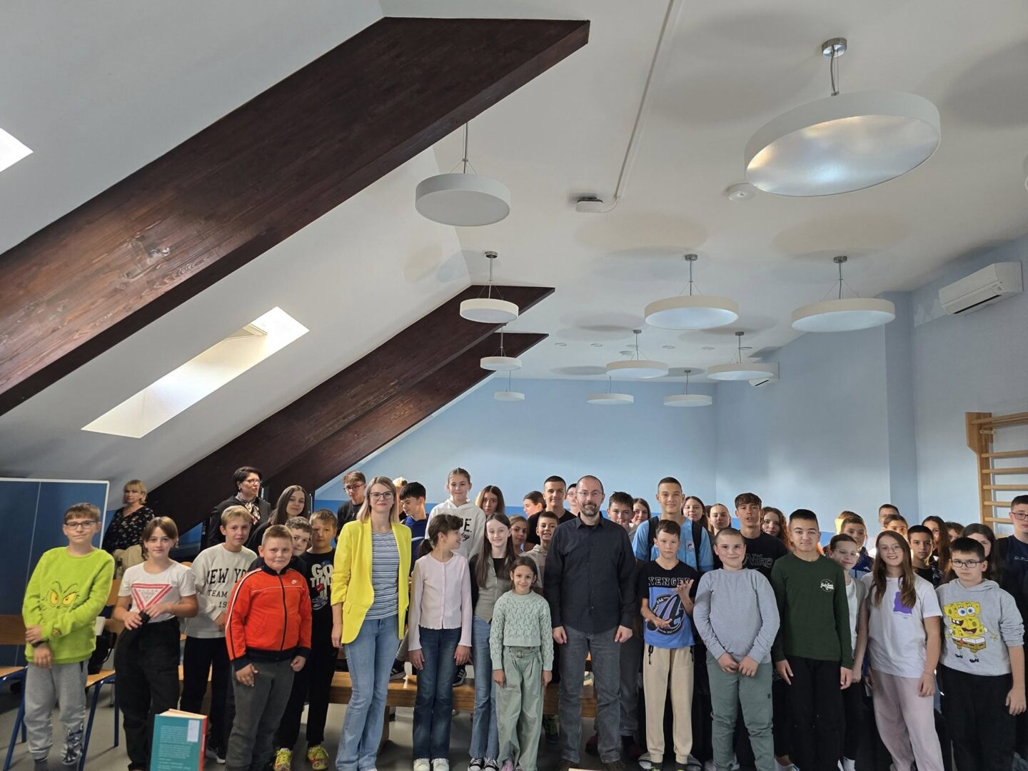 Taj književnik za djecu i mlade, po struci pravnik i knjižničar, ispričao je učenicima 4., 6., 7. i 8. razreda svoj životni put koji ga je doveo do zanimanja književnika.