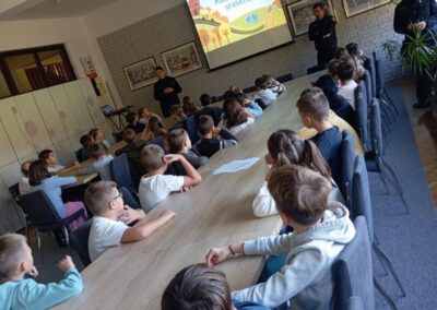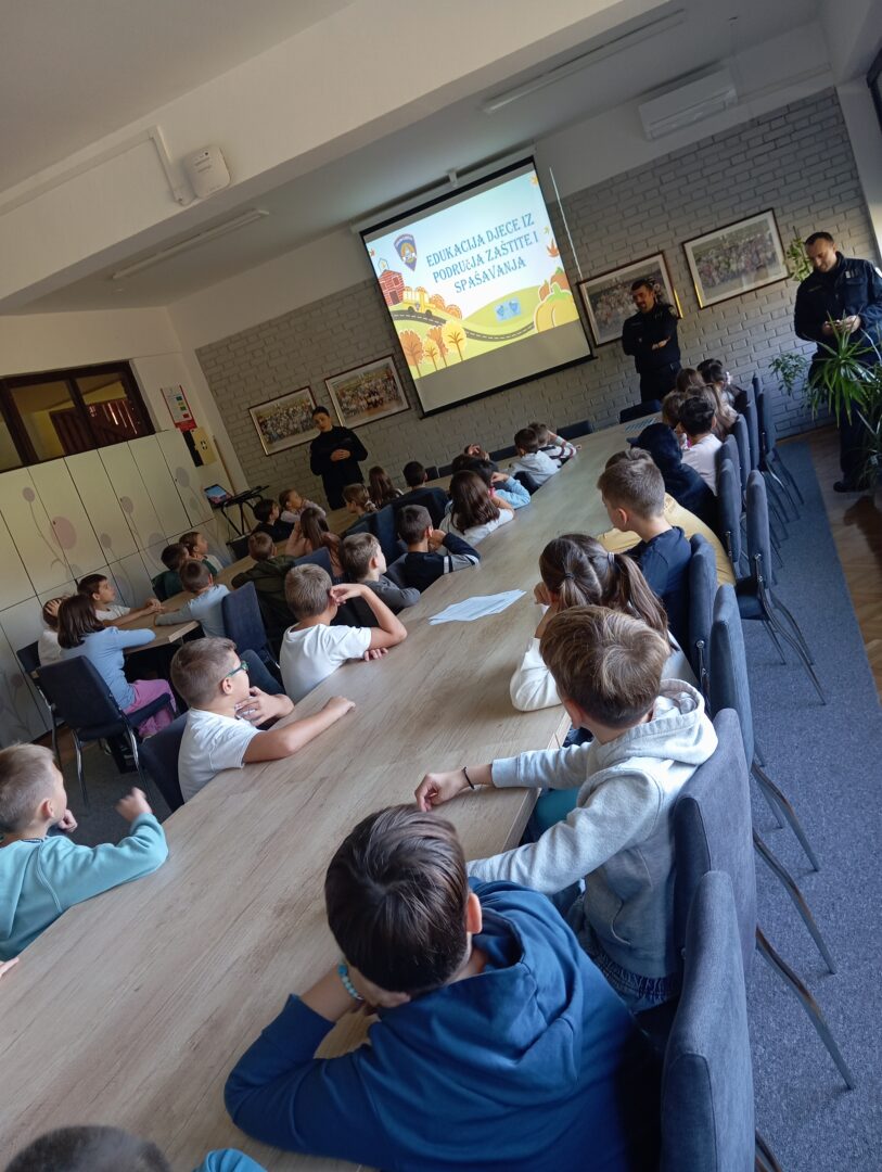 Učenike su upoznali s pojmovima požara, potresa i poplava, razlozima nastanka te o postupcima ukoliko dođe do istih. Napomenuli su im koji broj trebaju zvati u slučaju nesreće (112) te o tome koje su obveze policije u slučaju požara.