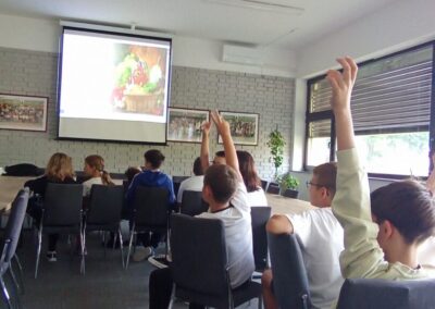 Gđa Reljanović objasnila je učenicima zašto su Školska shema i zdrava hrana važne, koja su osnovna načela i vodeći problemi (suvremene) prehrane te što ubrajamo u dobre a što u loše kalorije. Istaknula je važnost ekološke proizvodnje. Naglasila je kako voće i povrće ima važnu ulogu u prevenciji mnogih bolesti, a najbolje ga je konzumirati sezonsko.