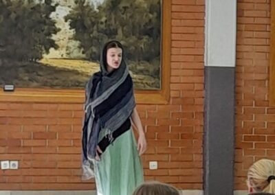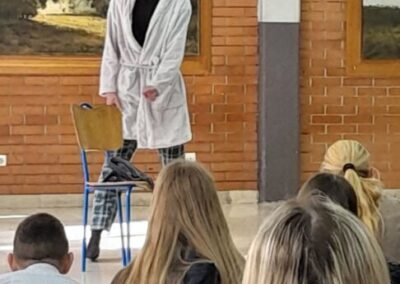 Naši su učenici sudjelovali u kategoriji pojedinačnih nastupa izvedbom monologa i to: Marko Martinović (8. a) monologom Telekomplikacije autora Ephraima Kishona, Irina Zuko (8. b) monologom iz djela Djevojčica iz Afganistana autorice Deborah Ellis i Eva Delinger (6. d) monologom Srna autora Dinka Šimunovića, a pod mentorstvom učiteljice hrvatskoga jezika Ivane Paulić.