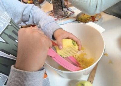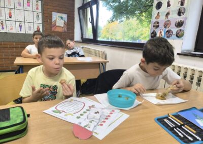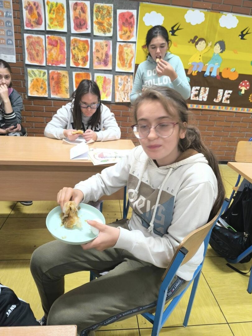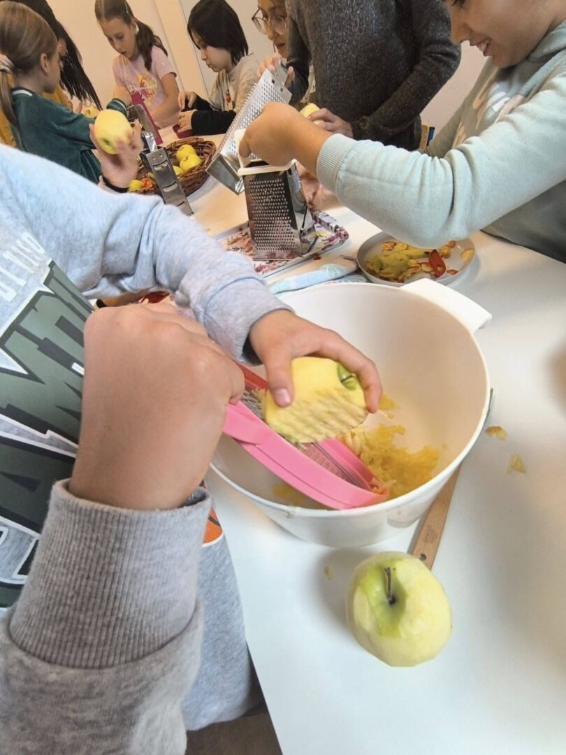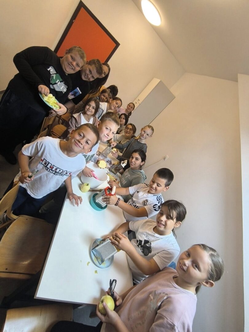 Učenici 3.c i učenici posebnih odjela koji pohađaju produženi boravak zajedno sa svojim učiteljicama, Martinom Golužom i Brankom Peulić, sudjelovali su na kulinarskoj radionici izrade štrudle od jabuka.