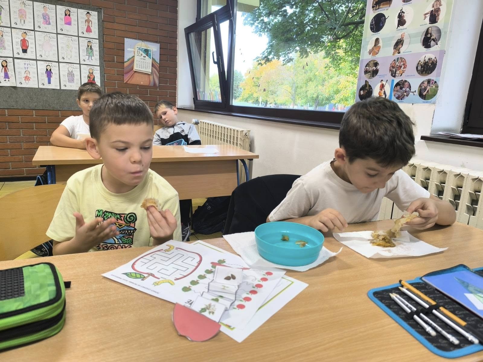 Dok su se štrudle pekle i hladile, učenici su poslušali kratku priču o jabuci koju im je pročitala učiteljica Martina te riješili nekoliko nastavnih listića o jabukama.